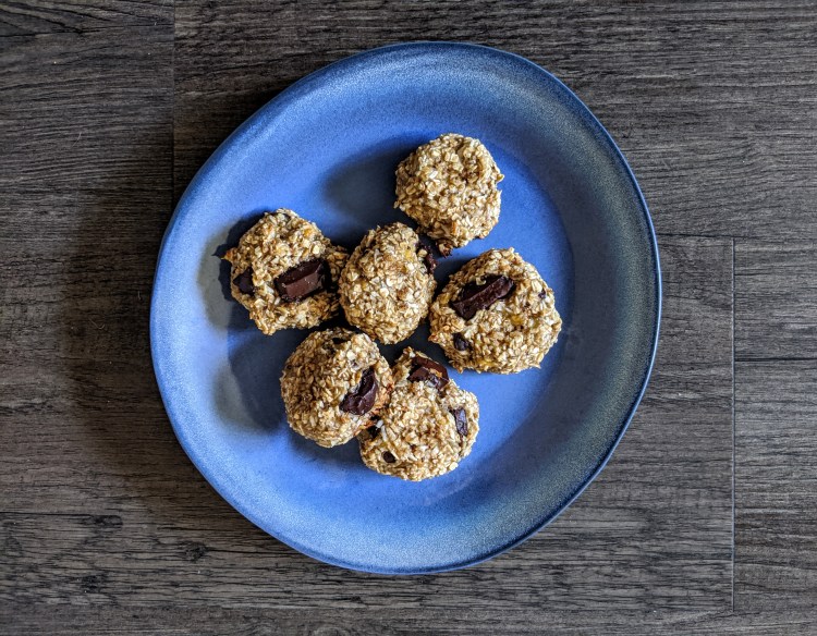 * Cookies moelleux à la banane, flocons d’avoine et chocolat noir *