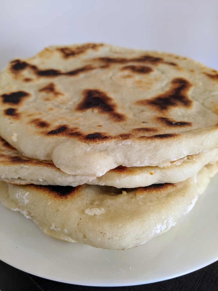 6. Faites cuire 5 minutes par face votre naan Ă la plancha, ou dans une poĂȘle Ă crĂȘpes par exemple